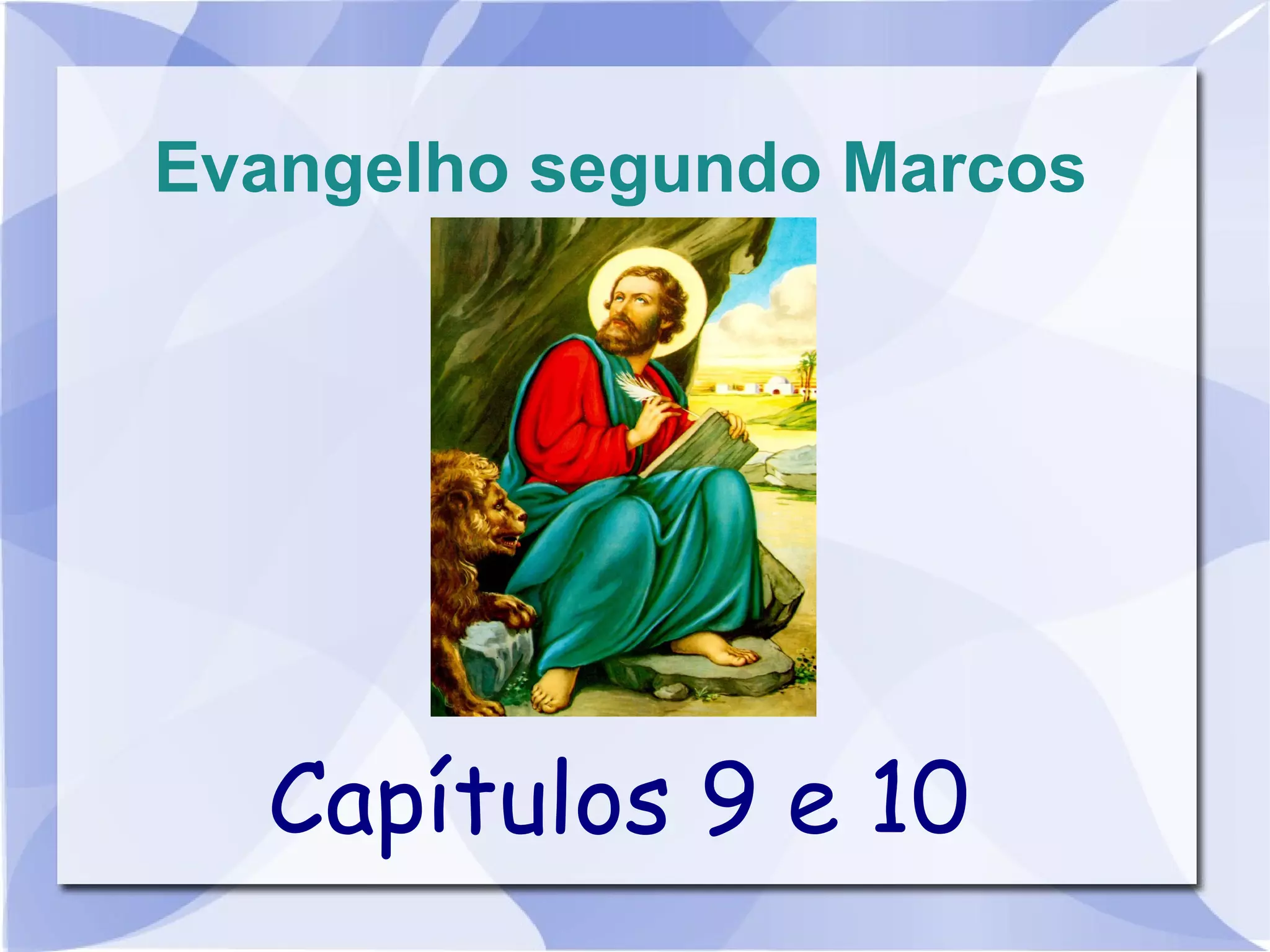 Os capítulos 9 e 10 do Evangelho de Marcos descrevem a transfiguração de Jesus, Ele expulsando demônios, ensinamentos sobre o Reino de Deus e a fé, e Jesus curando um cego em Jericó.