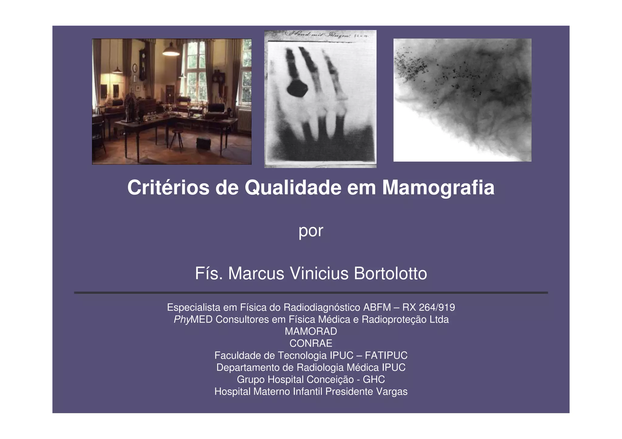 O documento discute critérios de qualidade em mamografia, comparando sistemas analógicos e digitais. Sistemas digitais fornecem imagens de maior resolução espacial e contraste, permitindo melhor detecção de lesões, em comparação com sistemas de filme que produzem imagens com ruído e baixo contraste. O tamanho menor dos pixels em sistemas digitais melhora a detecção de detalhes finos.