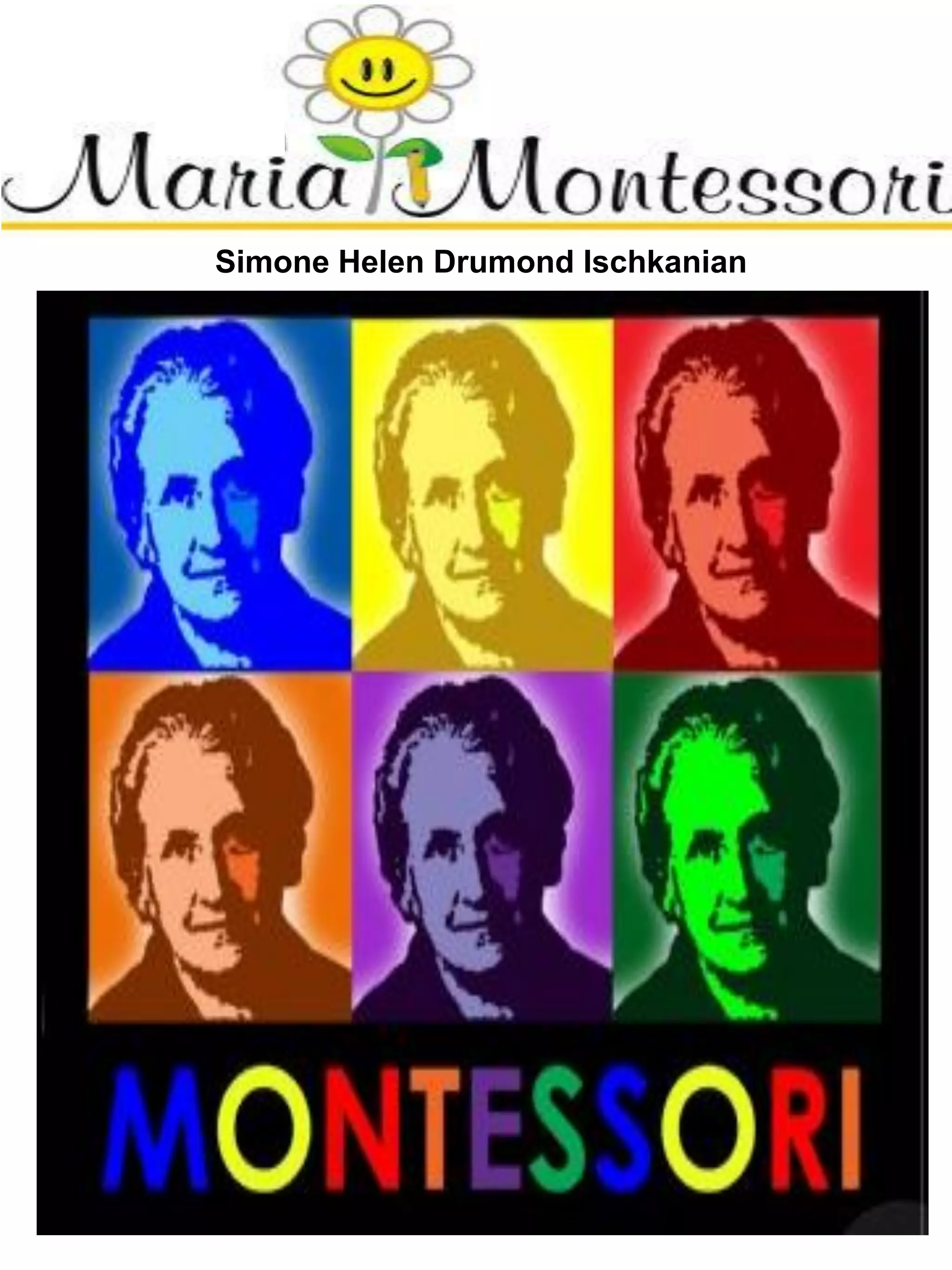 O documento descreve o método educacional de Maria Montessori. Ela desenvolveu materiais pedagógicos e atividades lúdicas para estimular o desenvolvimento sensorial e cognitivo de crianças. Seu método enfatiza a liberdade, auto-aprendizagem e o desenvolvimento das habilidades da criança através de experiências práticas.
