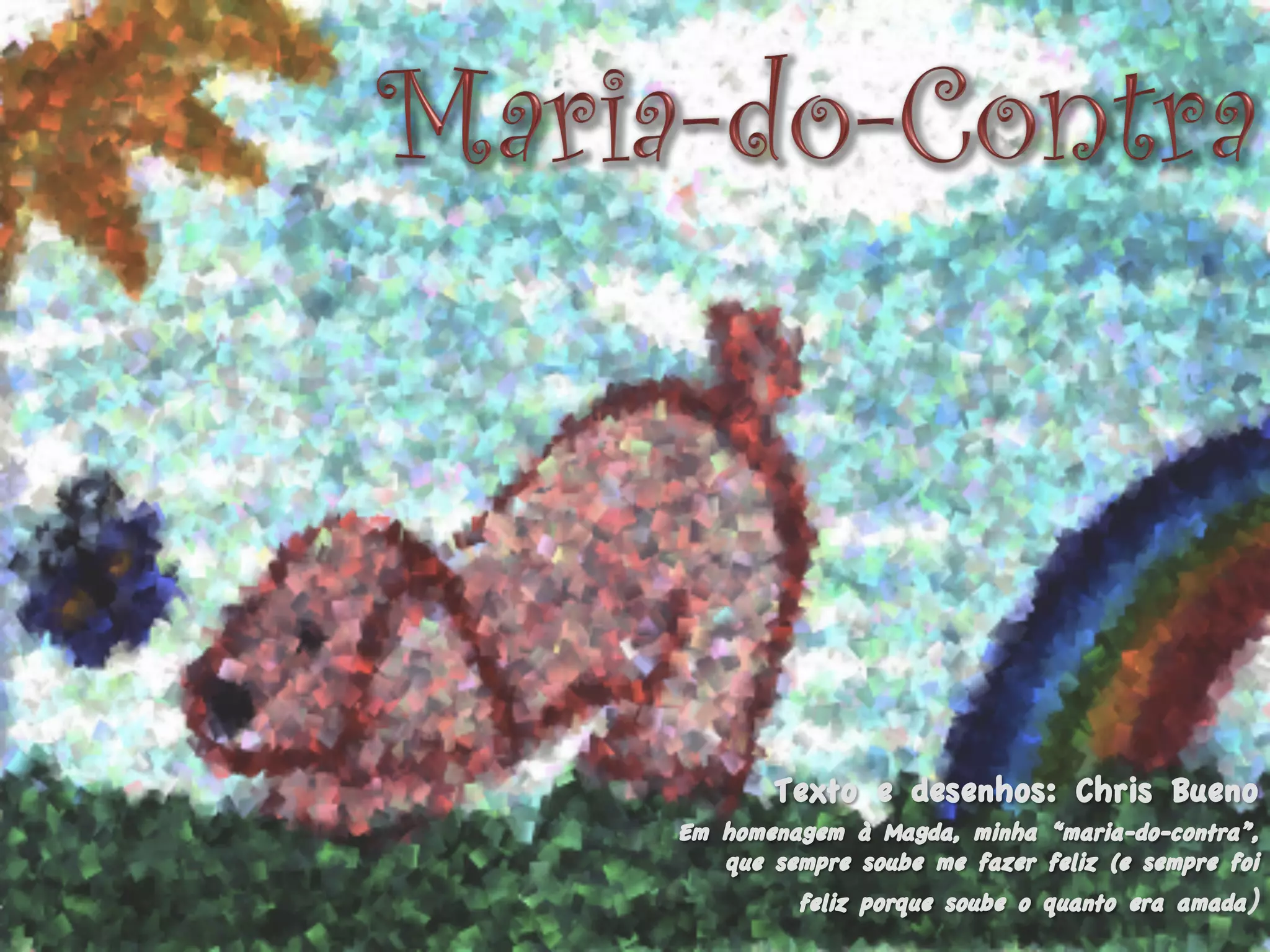 Este documento descreve Maria-do-contra, uma cachorra diferente que vivia em uma rua cheia de cachorros. Maria gostava de fazer as coisas de forma não convencional e se divertia aprontando. Depois de ficar quieta por dois meses, Maria voltou com seis filhotes, espalhando seu jeito "do contra" por toda a rua.