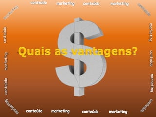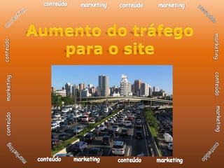 O documento discute o que é marketing de conteúdo, envolvendo a elaboração e compartilhamento de materiais como e-books, white papers e webinars para promover uma marca. Ele também destaca que as mídias sociais são as mais utilizadas nessa estratégia de marketing, além de mencionar como o marketing de conteúdo pode gerar mais tráfego e confiança entre empresas e consumidores.