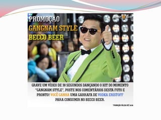 O documento discute os principais conceitos e estratégias de marketing de eventos, incluindo os 3 E's (Entretenimento, Excitação e Empreendedorismo), os 5 P's (Produto, Preço, Distribuição, Relações Públicas e Posicionamento) e os 5 W's (Por que, Quem, Quando, Onde, O que). Também fornece exemplos de empresas que utilizam estratégias de marketing de eventos em seus negócios.