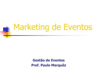 O documento discute marketing de eventos, definindo-o como uma modalidade de marketing promocional que objetiva criar ambientes interativos para promover marcas e aumentar vendas. Também explica como eventos estabelecem relações com clientes e comunicam melhor a marca, levando ao aumento natural de vendas por meio da associação da marca ao sucesso do evento.