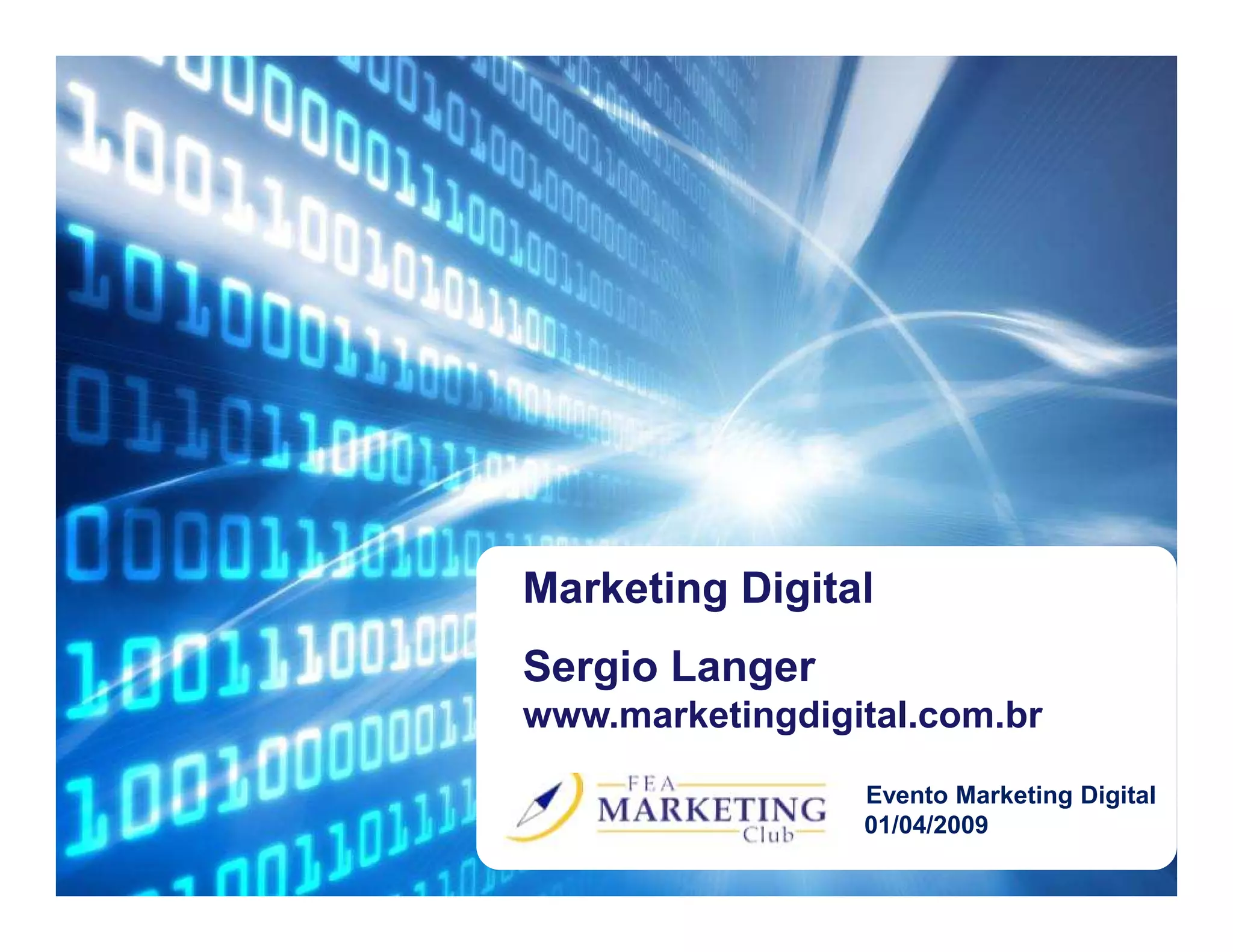 O documento fornece estatísticas e tendências sobre marketing digital no Brasil. Ele destaca que o acesso à internet no Brasil tem crescido significativamente, com mais da metade da população agora online, principalmente da classe C. Além disso, o investimento em publicidade digital tem aumentado rapidamente, enquanto mídias tradicionais perdem espaço. Por fim, dispositivos móveis como celulares também estão cada vez mais populares.
