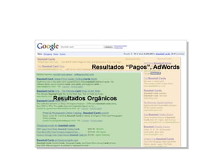 O documento discute várias estratégias de marketing digital, incluindo Search Engine Marketing (SEM), mídias sociais, publicidade em portais e e-mail marketing. Ele fornece detalhes sobre como usar links patrocinados, SEO e análise de sites para melhorar o posicionamento orgânico e de pagamento em mecanismos de busca.