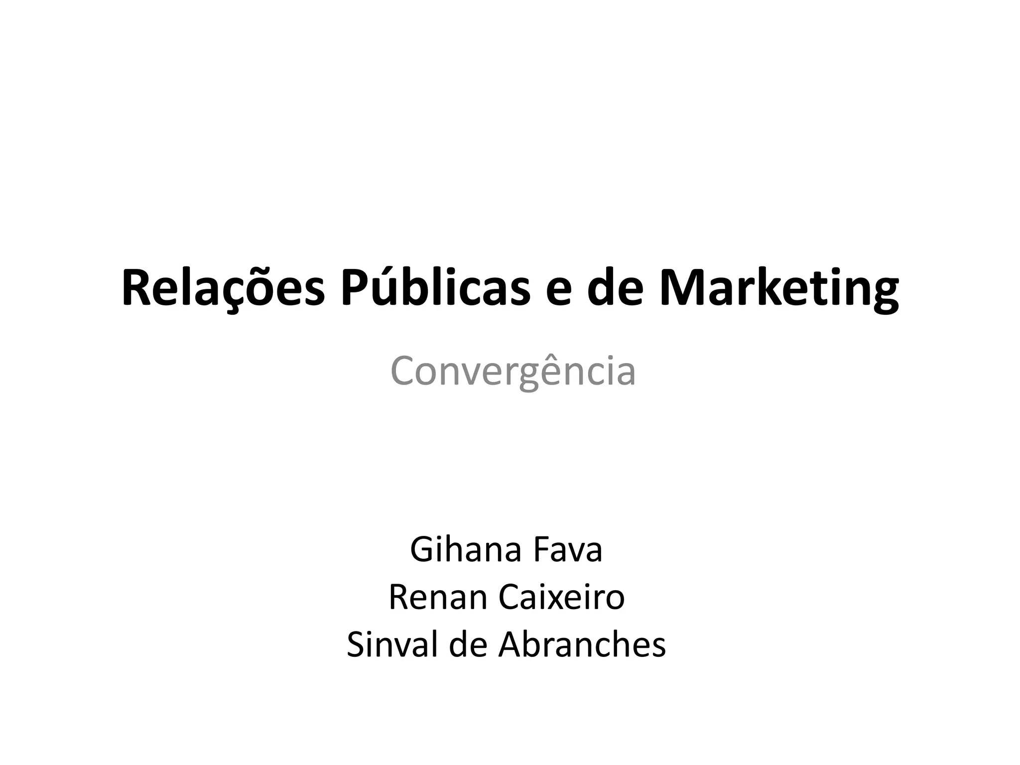 O documento discute a convergência entre marketing e relações públicas no Brasil. Apresenta o contexto histórico de ambas as áreas desde a década de 1960 e como elas têm se aproximado ao longo do tempo, com foco cada vez maior na gestão de relacionamentos. Também analisa o caso Enron para ilustrar como a imagem pública pode ser mais valiosa do que resultados reais.
