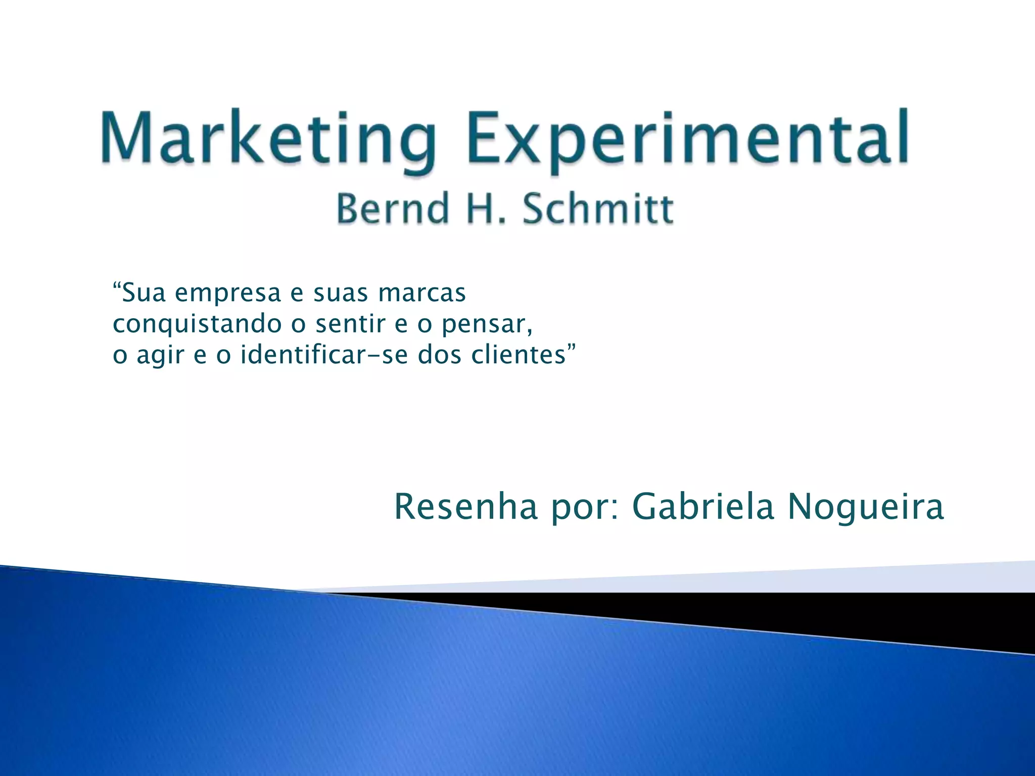 O documento discute o marketing experimental em oposição ao marketing tradicional, focado nas características do produto. O marketing experimental envolve criar experiências para os consumidores através de cinco módulos: sensação, sentimento, pensamento, ação e identificação. Estes módulos podem ser usados individualmente ou em combinação para criar experiências holísticas para os consumidores e diferenciar as marcas.