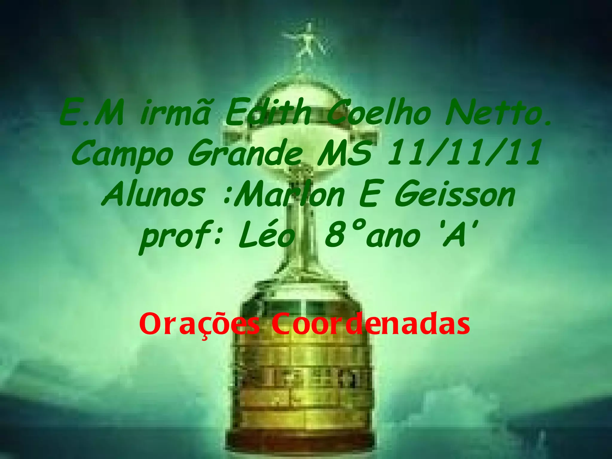 E.M irmã EdithCoelho Netto. Campo Grande MS 11/11/11 Alunos :Marlon E Geisson prof: Léo 8°ano ‘A’ Orações Coordenadas
