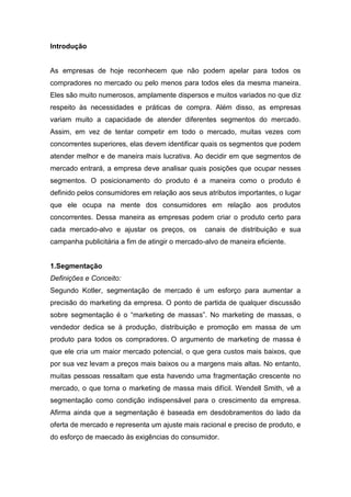 1) As empresas reconhecem que não podem apelar para todos os compradores e devem identificar quais segmentos podem atender melhor e de forma mais lucrativa.