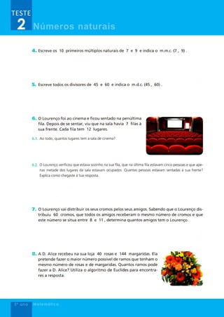 Este documento trata de números naturais no 5o ano. Parece ser um teste sobre este tópico de matemática. O documento não fornece muitas informações além do título e indicação de ser um teste.