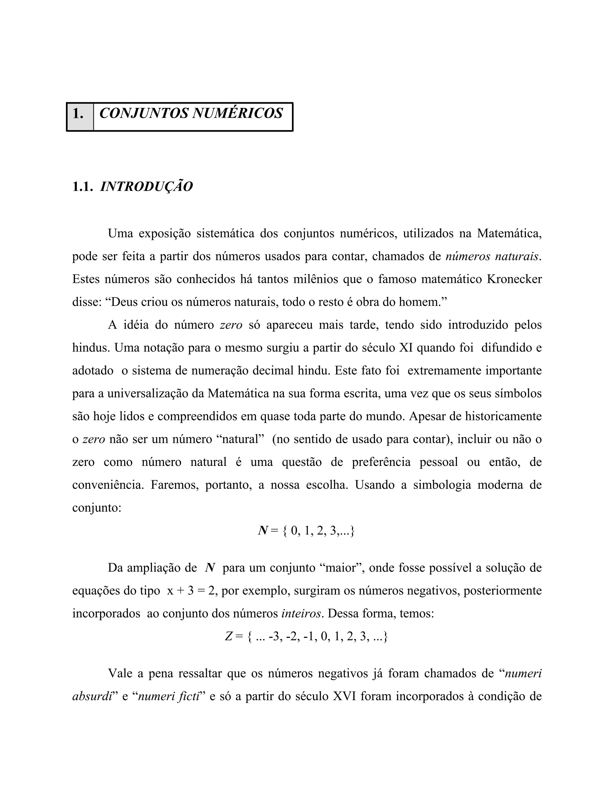 O documento descreve a construção dos conjuntos numéricos, começando pelos números naturais e evoluindo para os inteiros, racionais e reais. Explica que os números irracionais surgiram da descoberta de que a raiz quadrada de 2 não pode ser expressa como fração. Define o conjunto dos números reais como a união dos conjuntos racionais e irracionais, representando todos os pontos da reta numérica.