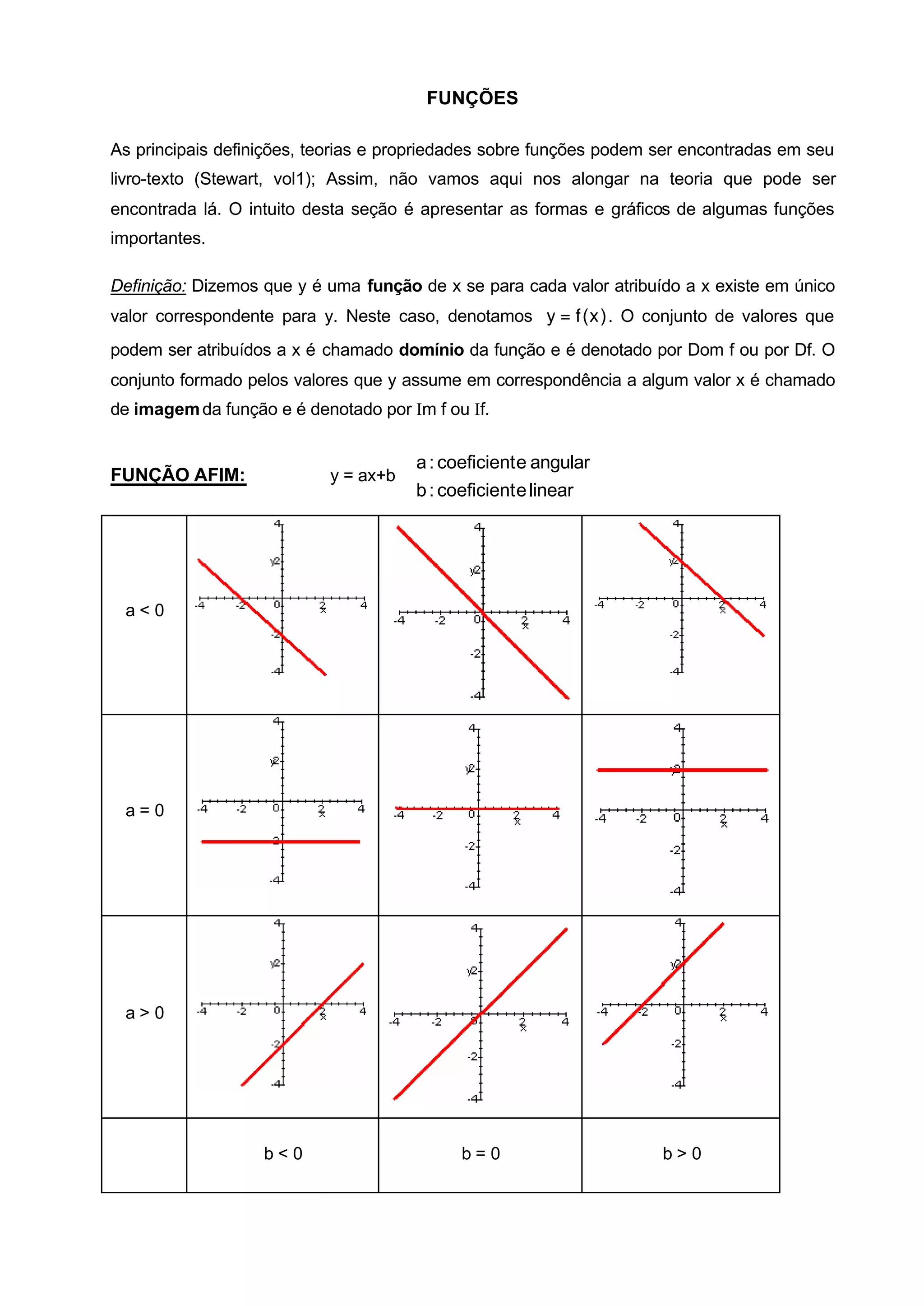encontrada lá. O intuito desta seção é apresentar as formas e gráficos de algumas funções