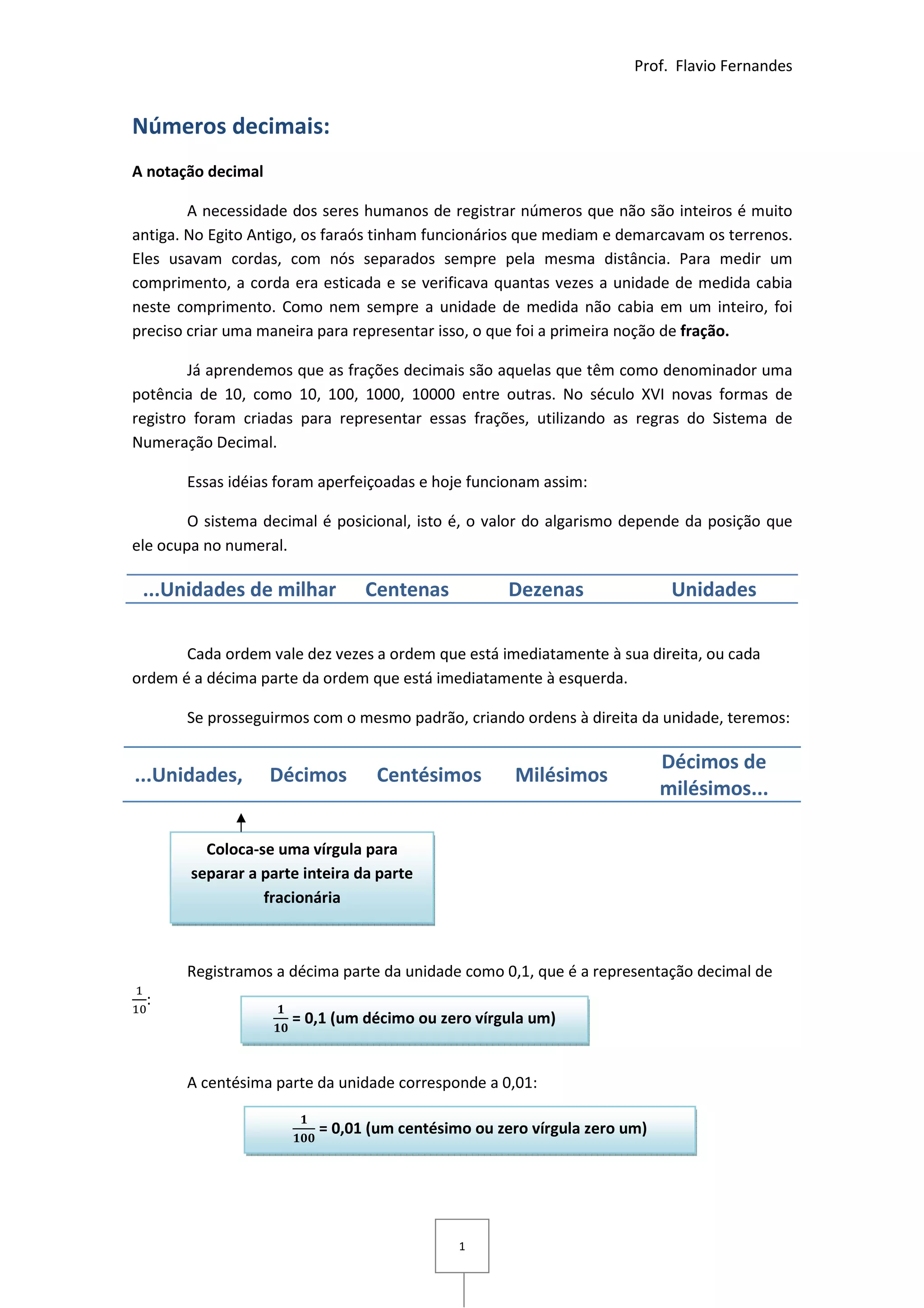 1) A notação decimal surgiu da necessidade de representar frações;