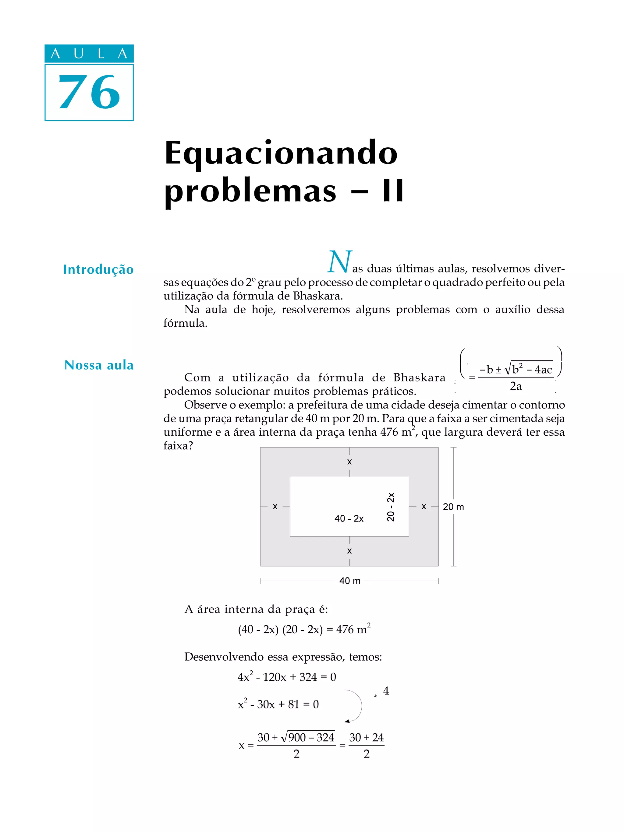 de uma praça retangular de 40 m por 20 m. Para que a faixa a ser cimentada seja