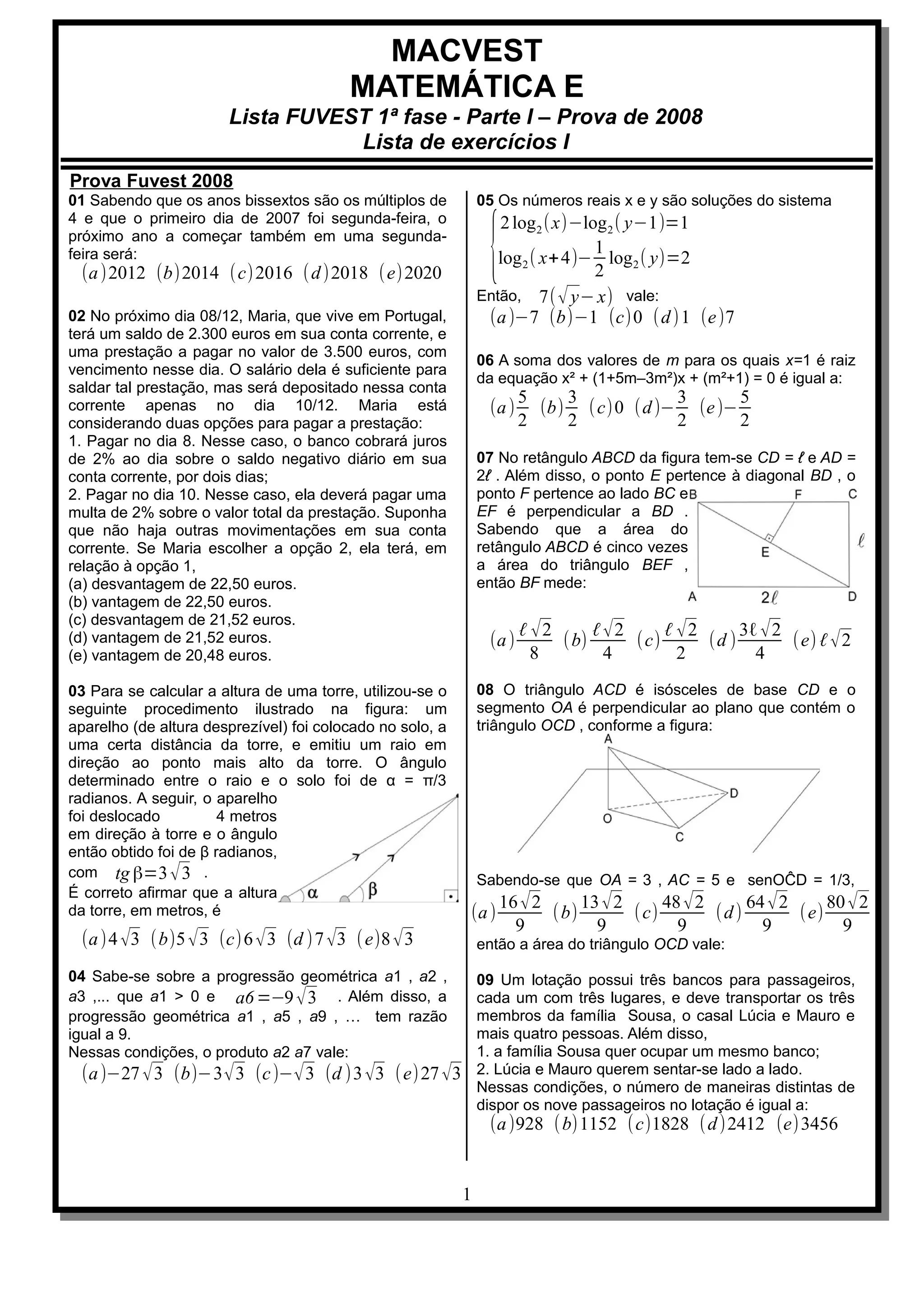 1) O resumo aborda questões sobre matemática, incluindo sistemas de equações, progressões geométricas, probabilidade e geometria.