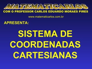 O documento introduz o sistema de coordenadas cartesianas através de exemplos e explicações passo a passo. O professor Carlos explica que o sistema de coordenadas foi inventado para ajudar a localizar pontos em mapas ou no plano cartesiano e funciona indicando quantas casas andar para os lados e para cima ou baixo. Ele demonstra como ler pontos em formato de código e aplicá-los no plano, usando exemplos numéricos.