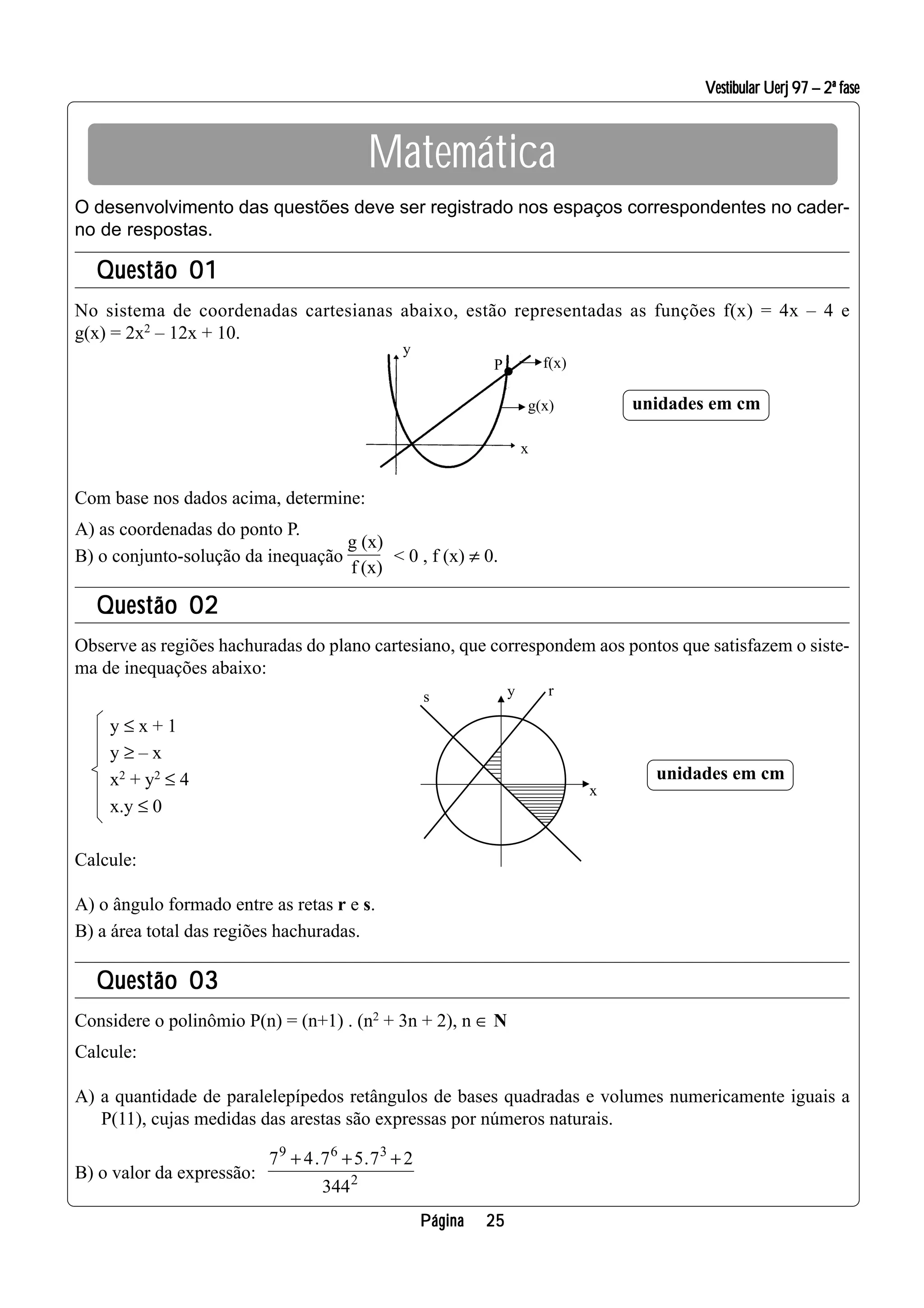 4) As outras questões envolvem cálculos com polinômios, áreas de figuras geométricas e seno de ângulos.