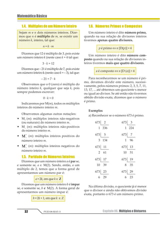 Este documento apresenta um sumário detalhado sobre os principais tópicos de matemática básica, incluindo potenciação, radiciação, produtos notáveis, fatoração, porcentagem, múltiplos e divisores, teoria dos conjuntos e equações. O documento define cada tópico, lista suas propriedades e fornece exemplos de problemas e exercícios relacionados.