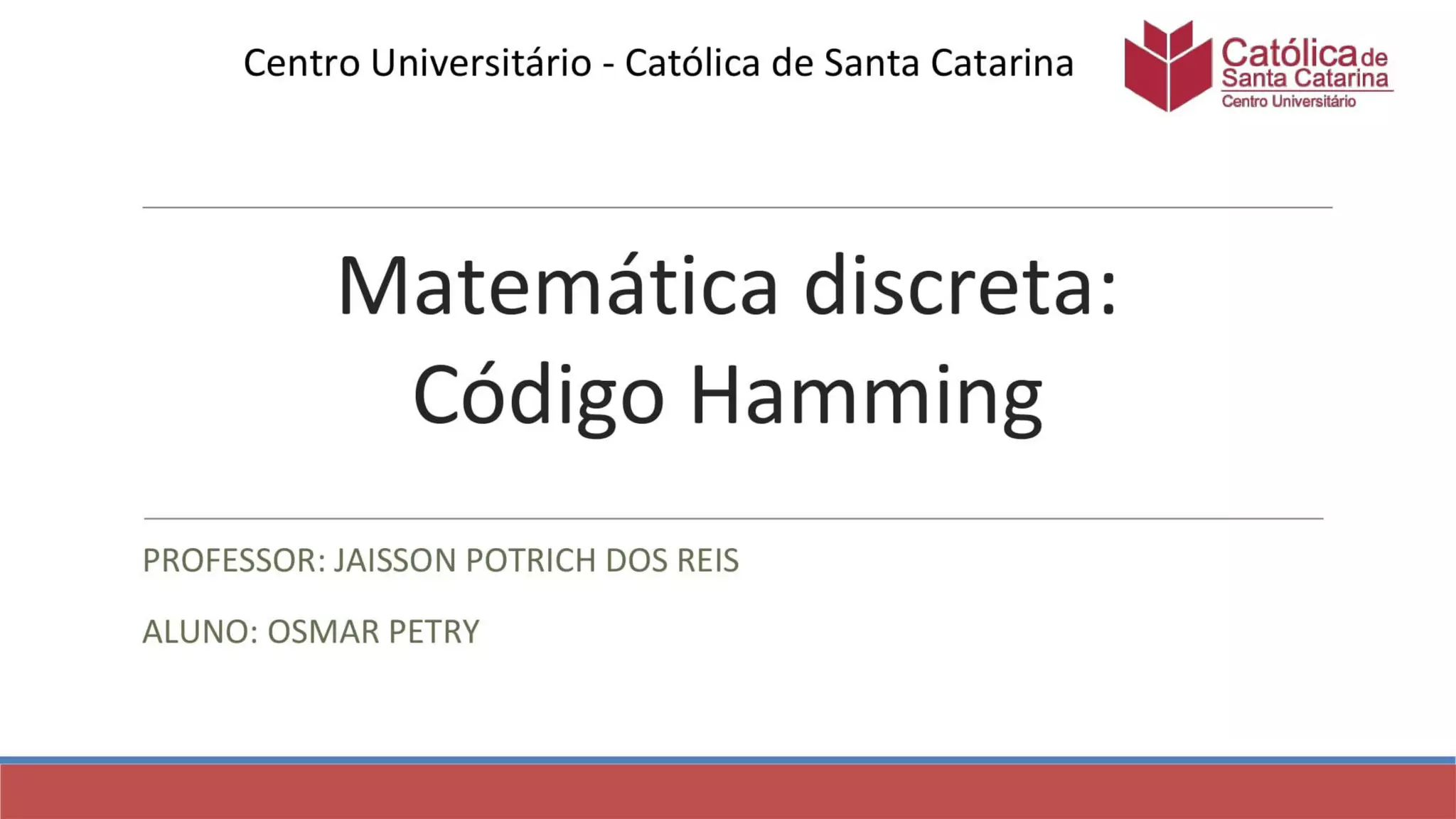 Apresentação feita em matéria dirigida de matemática discreta no curso de Sistemas de Informação para o professor Jaisson dos Reis na Católica Jaraguá do Sul