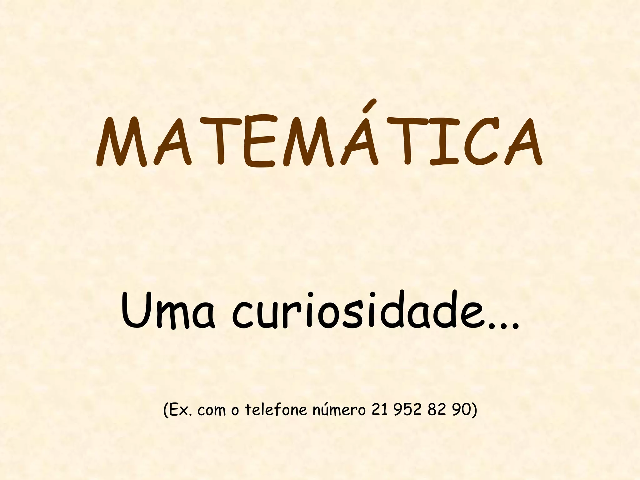 Este documento apresenta um curioso jogo matemático onde, a partir dos algarismos de um número de telefone, é possível chegar de volta ao mesmo número através de uma série de operações matemáticas como multiplicação, soma e divisão.