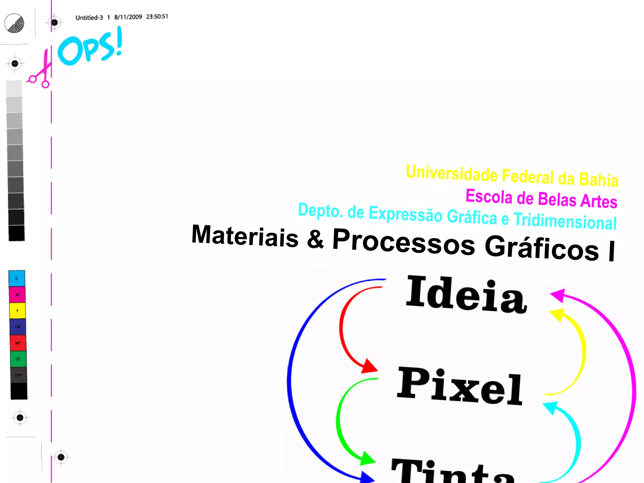 O documento discute os fatores que influenciam a qualidade na produção gráfica, incluindo a importância da arte original, especificações para orçamento, cronograma e escolha do papel. Também descreve etapas como planejamento, provas e potenciais problemas de impressão como erro de registro, fora de cor e baixa resistência à abrasão.