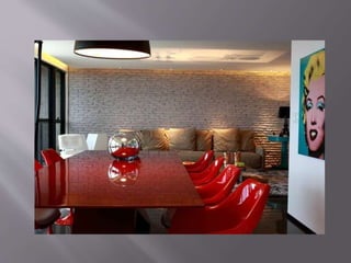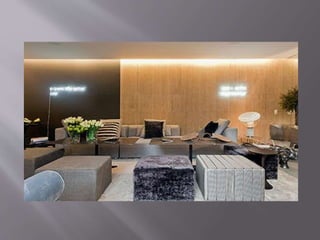 O documento discute o processo de criação de uma nova coleção de produtos de design de interiores. Ele começa com pesquisas de tendências, considerando o perfil do consumidor e a disponibilidade de matérias-primas, e então designers criam a coleção. O processo todo pode levar de um a três anos, dependendo de ser para atender uma demanda existente ou criar algo totalmente novo.