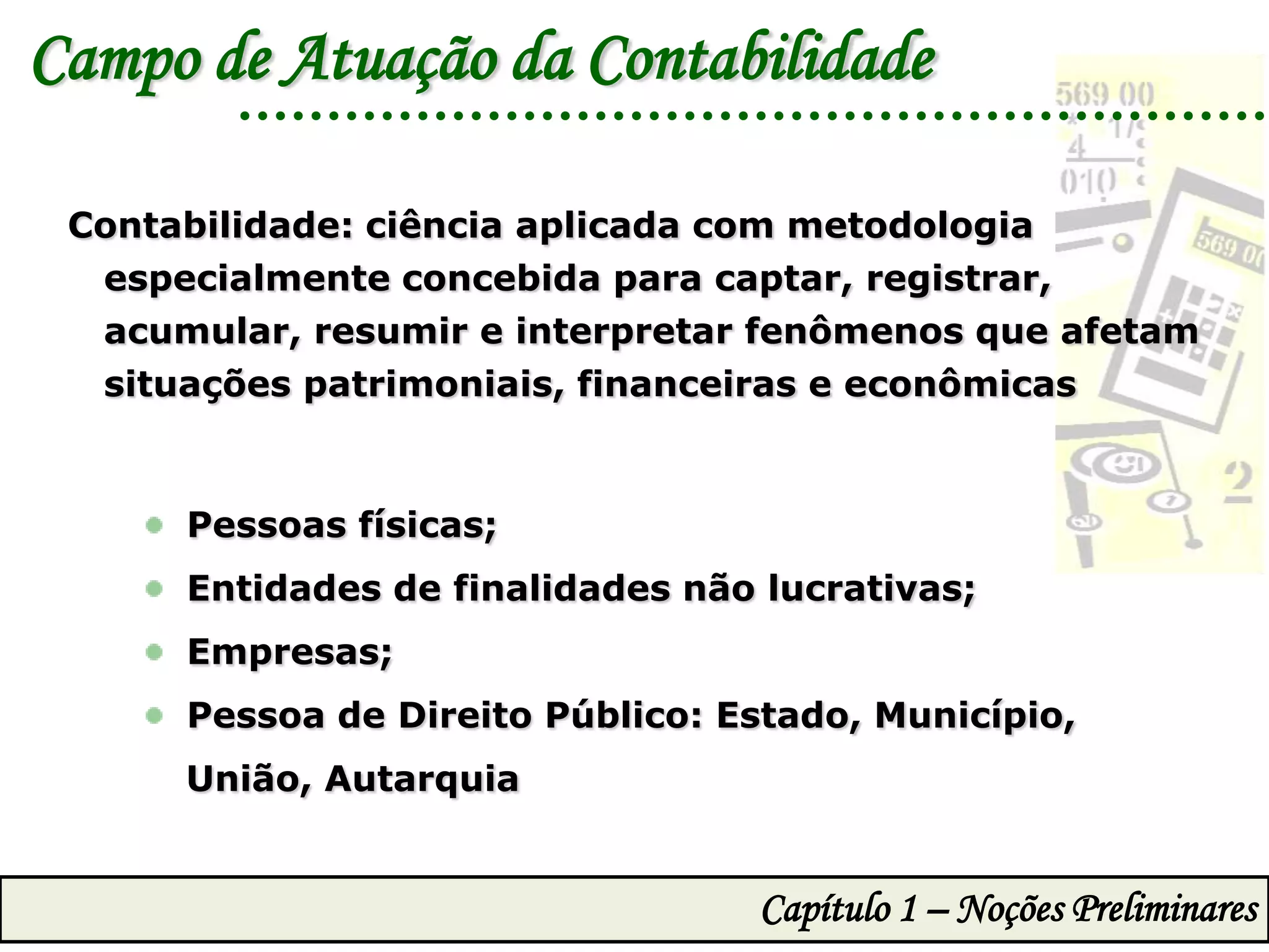 O documento discute os conceitos fundamentais da contabilidade, incluindo seu campo de atuação, grupos interessados, finalidades da informação contábil, especializações e funções, limitações e horizontes futuros. Ele também aborda conceitos como balanço patrimonial, ativo, passivo, patrimônio líquido e métodos contábeis básicos.