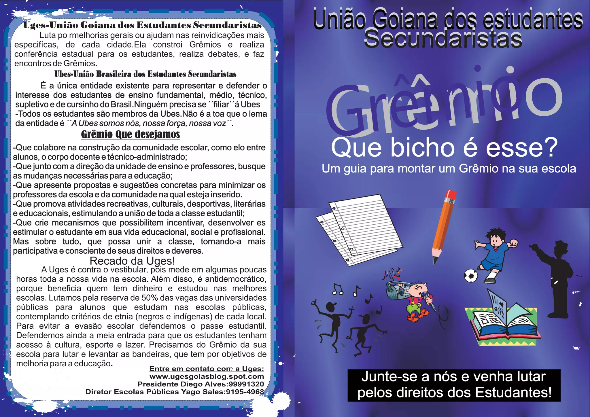 Uma organização chamada Uges defende os direitos dos estudantes secundaristas e promove debates e conferências para discutir melhorias na educação. A Ubes representa todos os estudantes brasileiros. O Grêmio Estudantil é formado por todos os alunos de uma escola e luta por melhorias educacionais e sociais.