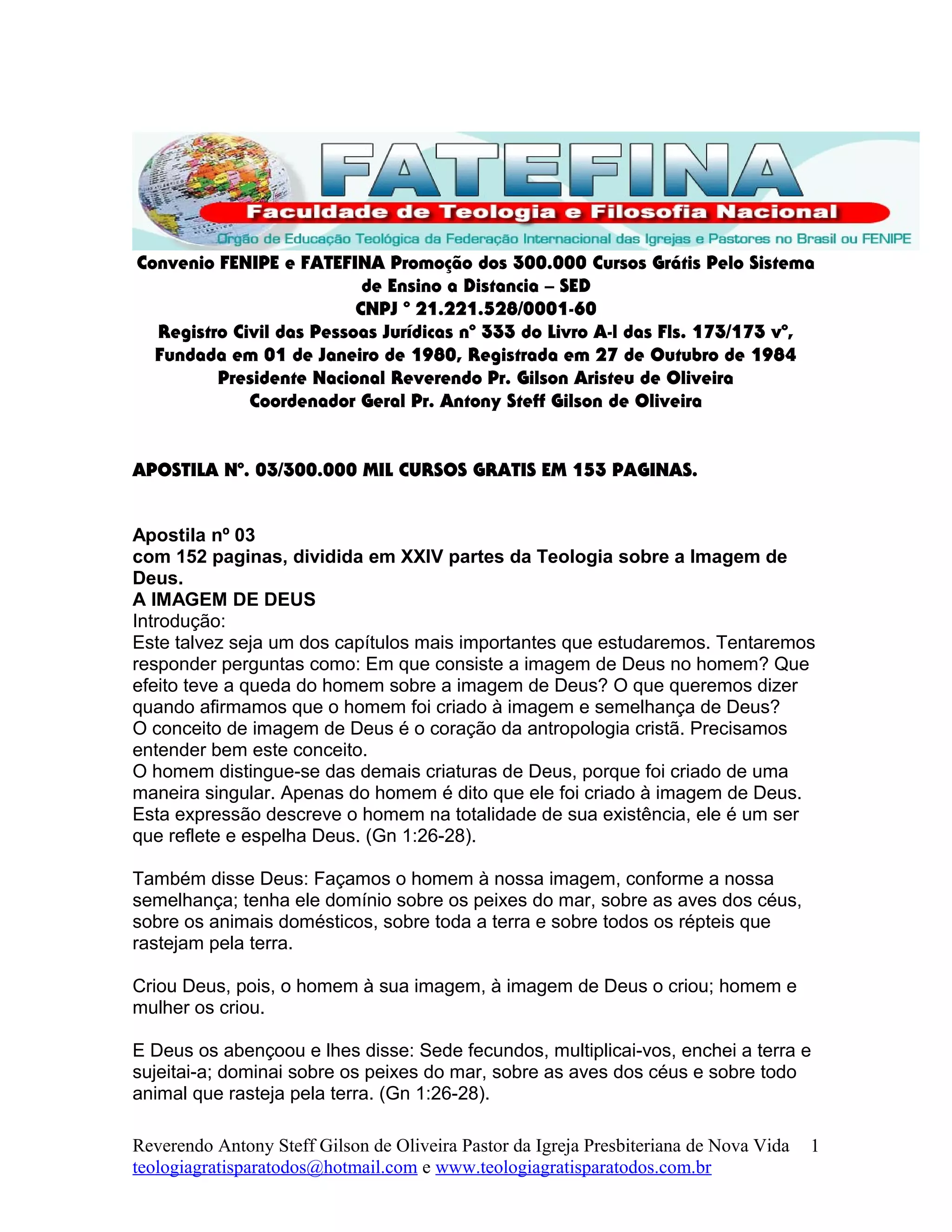 [1] O documento discute os quatro estágios da imagem de Deus no homem: a imagem original, a imagem desfigurada, a imagem renovada e a imagem aperfeiçoada.