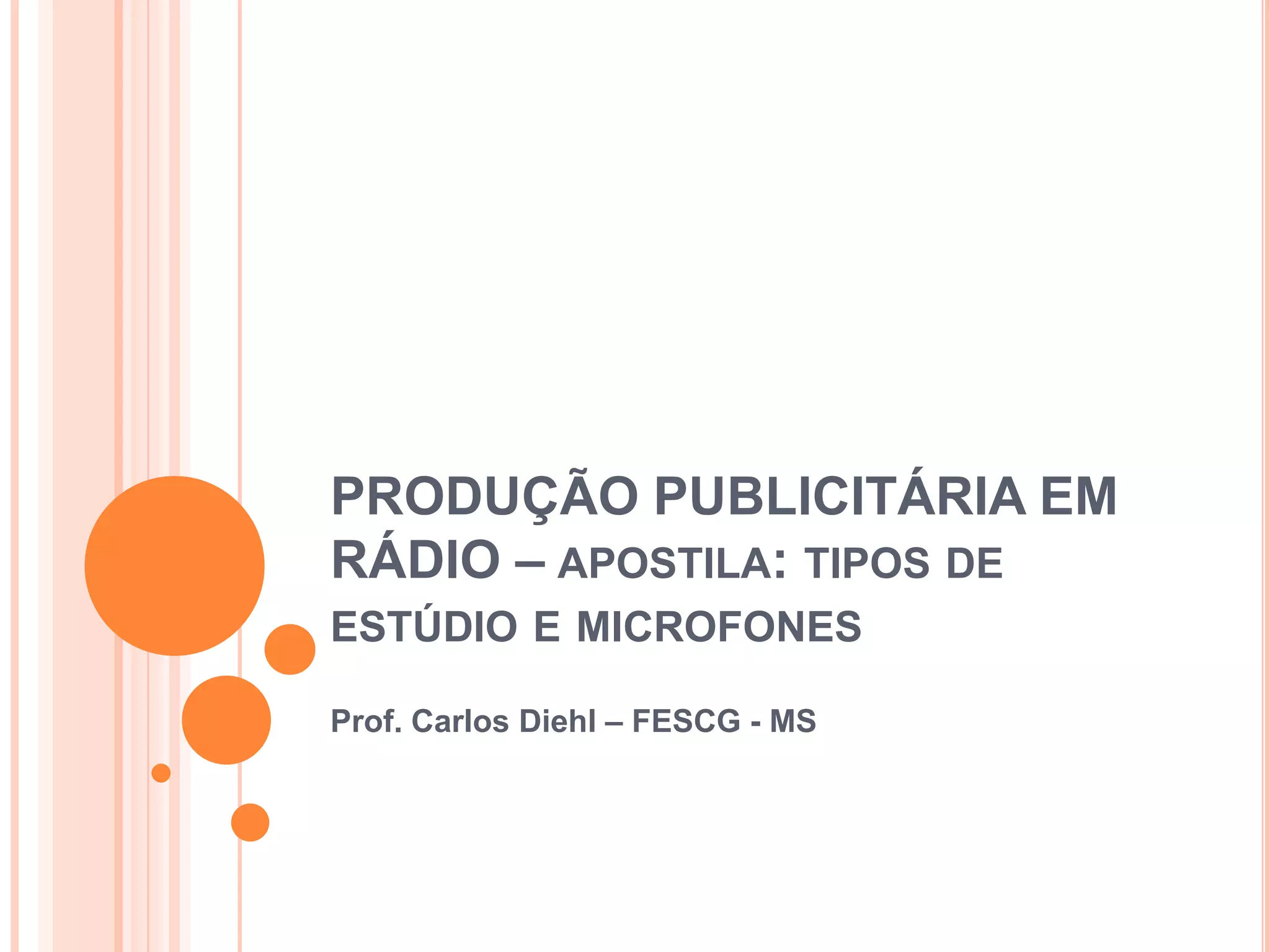 O documento descreve três tipos de estúdios de rádio, incluindo: