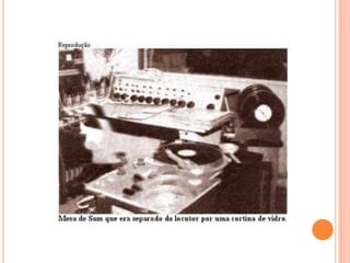 1) Estúdio tradicional com mesa de mixagem e microfones para entrevistas e programas;