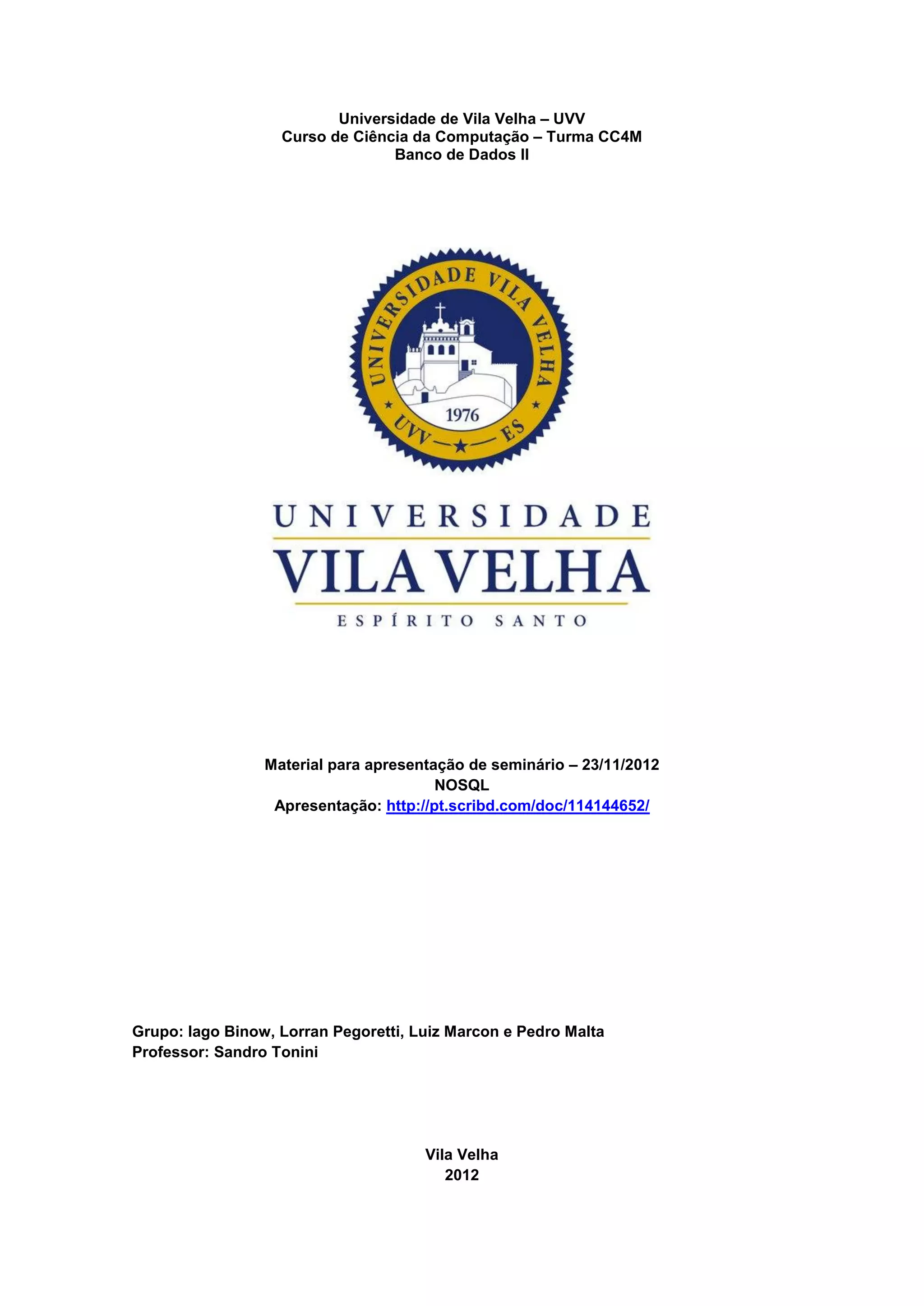 O documento discute o conceito de bancos de dados NoSQL, incluindo sua evolução, características e vantagens em comparação com bancos de dados relacionais. É destacado que NoSQL surgiu para suprir necessidades de escalabilidade e desempenho que bancos tradicionais não atendem, sendo amplamente utilizado por empresas como o Facebook. Além disso, aborda mitos comuns sobre NoSQL, enfatizando que sua implementação requer considerações cuidadosas e conhecimento especializado.