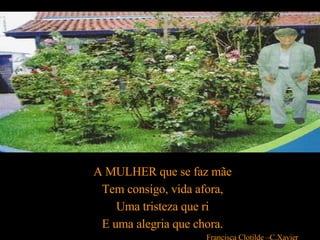 O documento é uma coleção de poemas curtos que celebram a maternidade e o amor maternal. Os poemas destacam a dedicação, o sacrifício e o amor incondicional das mães, descrevendo a mãe como uma fonte de alegria, consolo e guia espiritual.