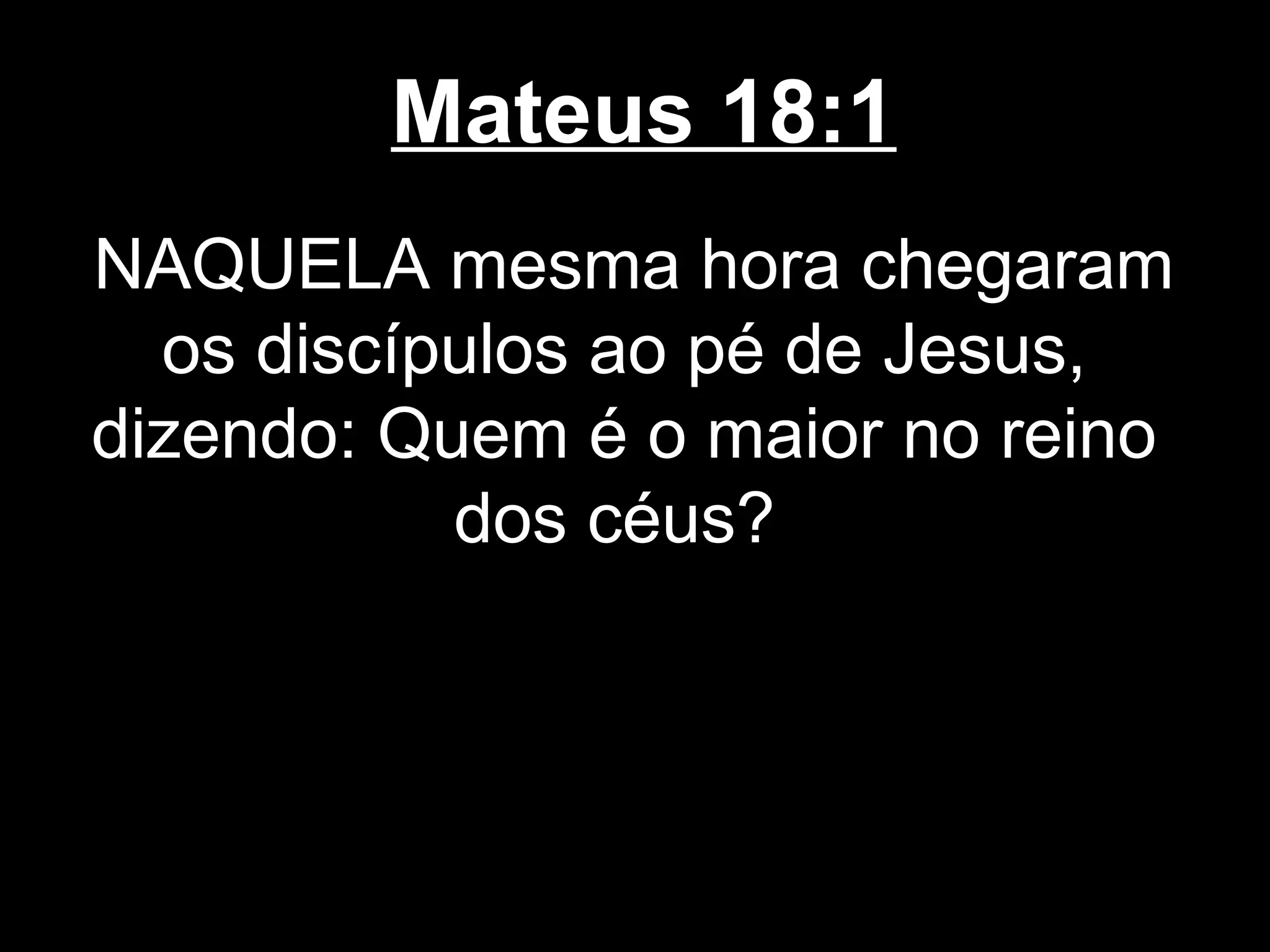 Este capítulo de Mateus descreve Jesus ensinando seus discípulos sobre a humildade e o perdão. Jesus diz que aqueles que se tornam humildes como as crianças entrarão no Reino dos Céus, e que Deus não quer que nenhum desses pequeninos se perca. Ele também diz que devemos perdoar uns aos outros, não apenas sete vezes, mas setenta vezes sete.