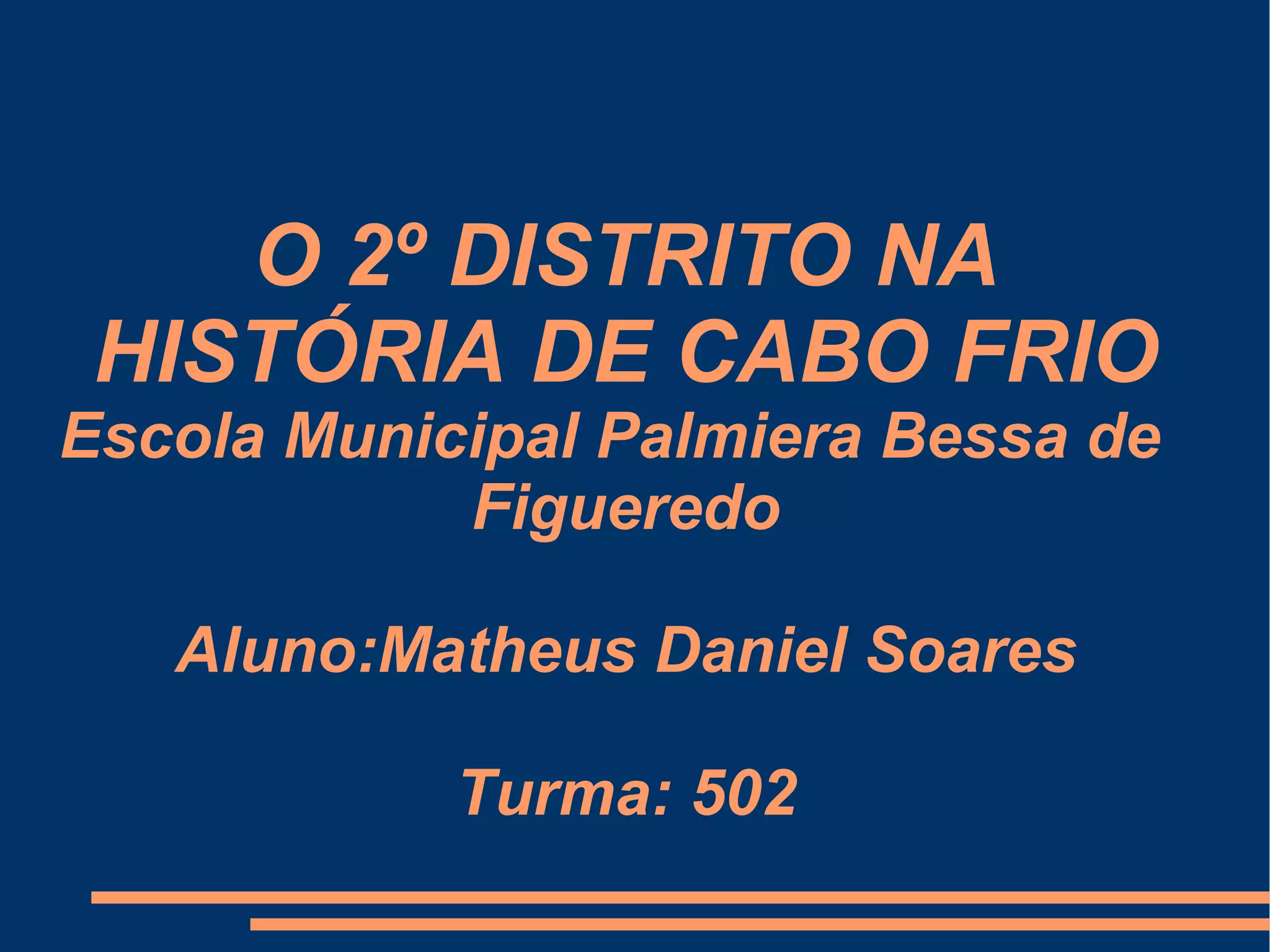 O documento descreve as características do 2o Distrito de Cabo Frio, no Rio de Janeiro, mencionando suas praias, como Praia de Unamar, lagoas, a Avenida Beira Rio e a divisa com Barra de São João.