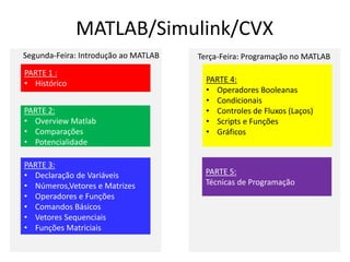 O documento fornece um panorama detalhado sobre MATLAB e Simulink, abordando desde seu histórico e desenvolvimento até uma descrição de suas funcionalidades e aplicações em diversos setores. Ele detalha a evolução do software, suas comparações com outras linguagens como C e Mathematica, e apresenta casos práticos de uso em projetos significativos, demonstrando a versatilidade da ferramenta em análise numérica e programação. O conteúdo é estruturado em partes que incluem conceitos básicos, operadores, funções, e comandos, além de destacar as potencialidades do MATLAB em distintas áreas de atuação.