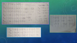 Este documento apresenta 5 exercícios sobre álgebra linear e determinantes. Os exercícios 1-3 abordam operações básicas com matrizes, enquanto os exercícios 4-5 tratam do cálculo de determinantes.