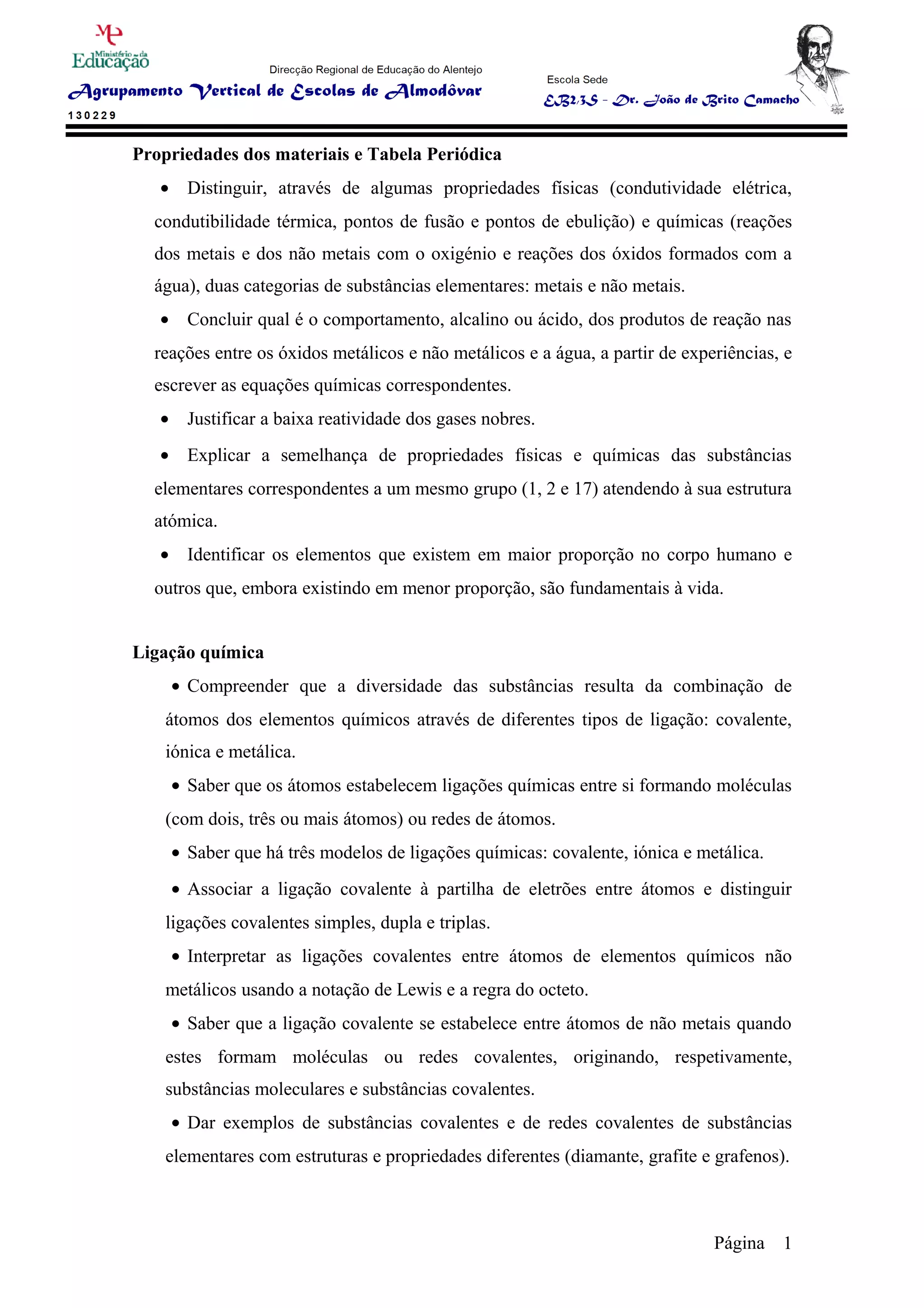 O documento discute as propriedades dos materiais e a tabela periódica, distinguindo metais e não metais. Também explica os três tipos principais de ligação química - covalente, iônica e metálica - e como eles afetam as propriedades das substâncias. Finalmente, aborda compostos orgânicos importantes e polímeros.