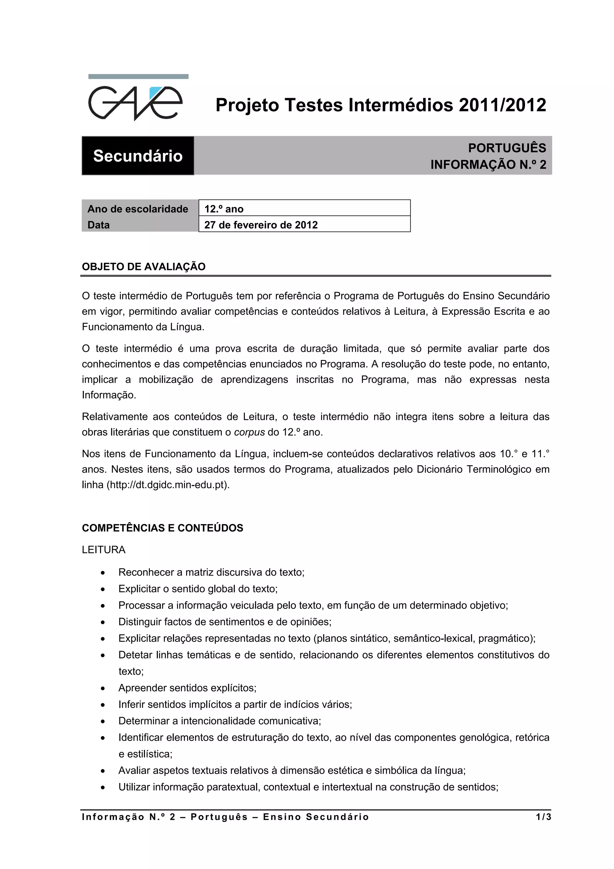 Informação N.º 2 – Português – Ensino Secundário 3/3