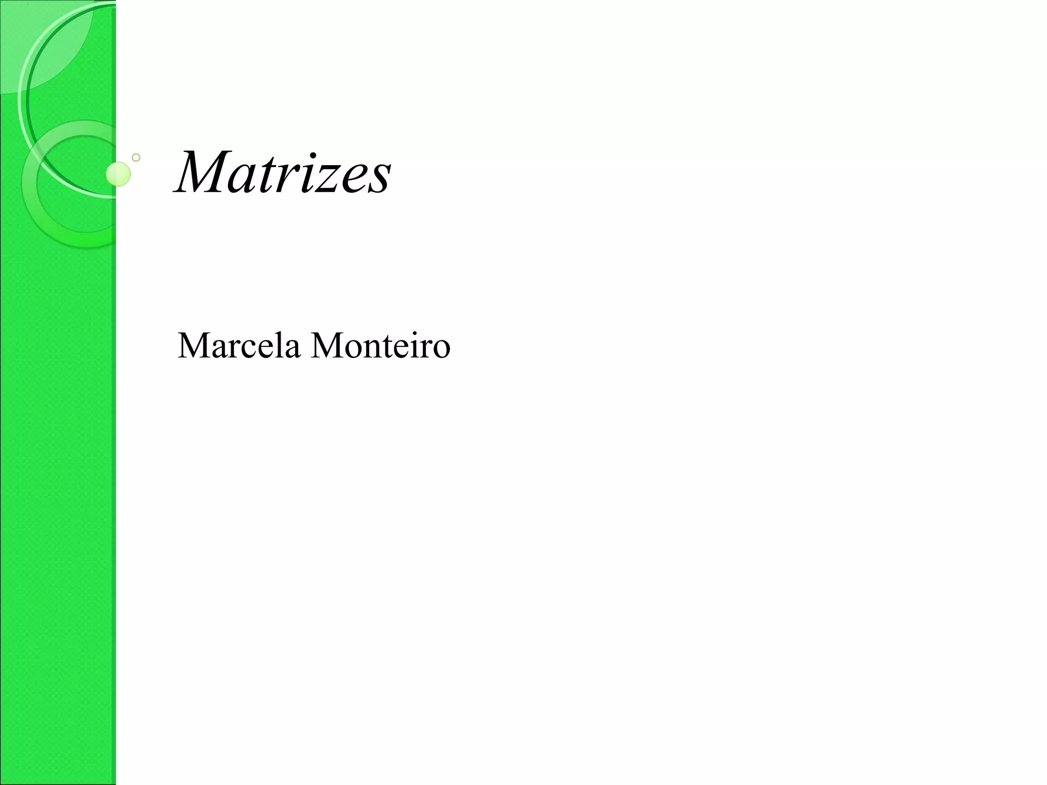 1) O documento discute matrizes, definindo-as como conjuntos de elementos dispostos em linhas e colunas. Classifica matrizes de acordo com o número de linhas e colunas e apresenta tipos como nula, diagonal e identidade.
