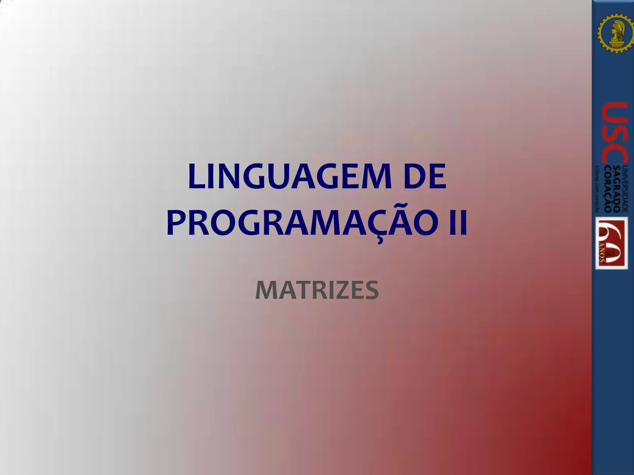 O documento descreve conceitos sobre matrizes em linguagem de programação, incluindo: (1) matrizes são variáveis multidimensionais que armazenam dados do mesmo tipo; (2) índices são usados para referenciar cada elemento dentro da estrutura da matriz; (3) existem várias formas de declarar, inicializar e atribuir valores a matrizes.