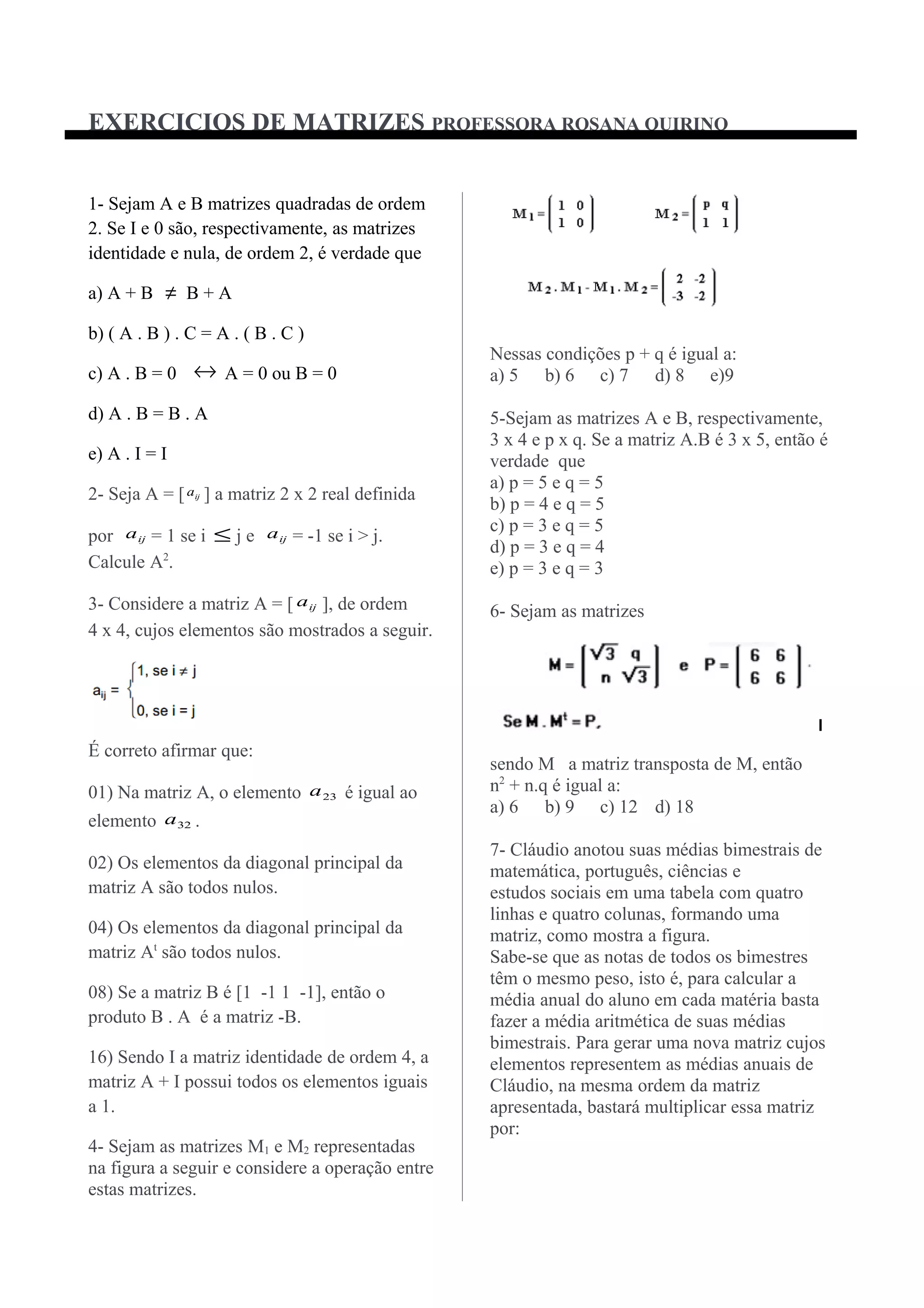 EXERCICIOS DE MATRIZESPROFESSORA ROSANA QUIRINO