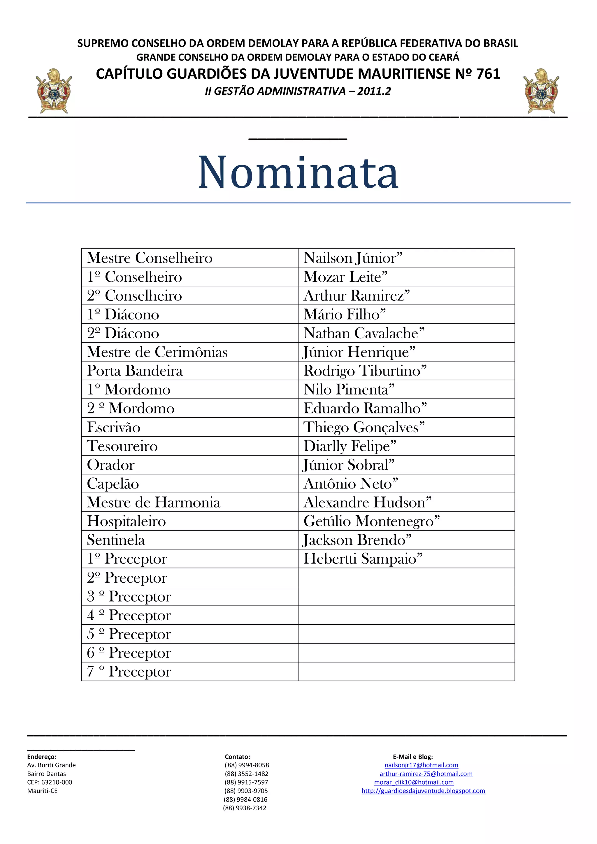 CAPÍTULO GUARDIÕES DA JUVENTUDE MAURITIENSE Nº 761