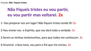 1- Vou preparar-vos um lugar! Não fiqueis tristes tende fé! 2x