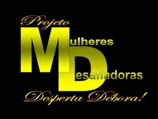 O documento discute o ministério de resgatar mulheres através da autoridade espiritual, conquistando vidas, sonhos e reconhecimento, e lutando contra a violência doméstica, suicídio e aborto.