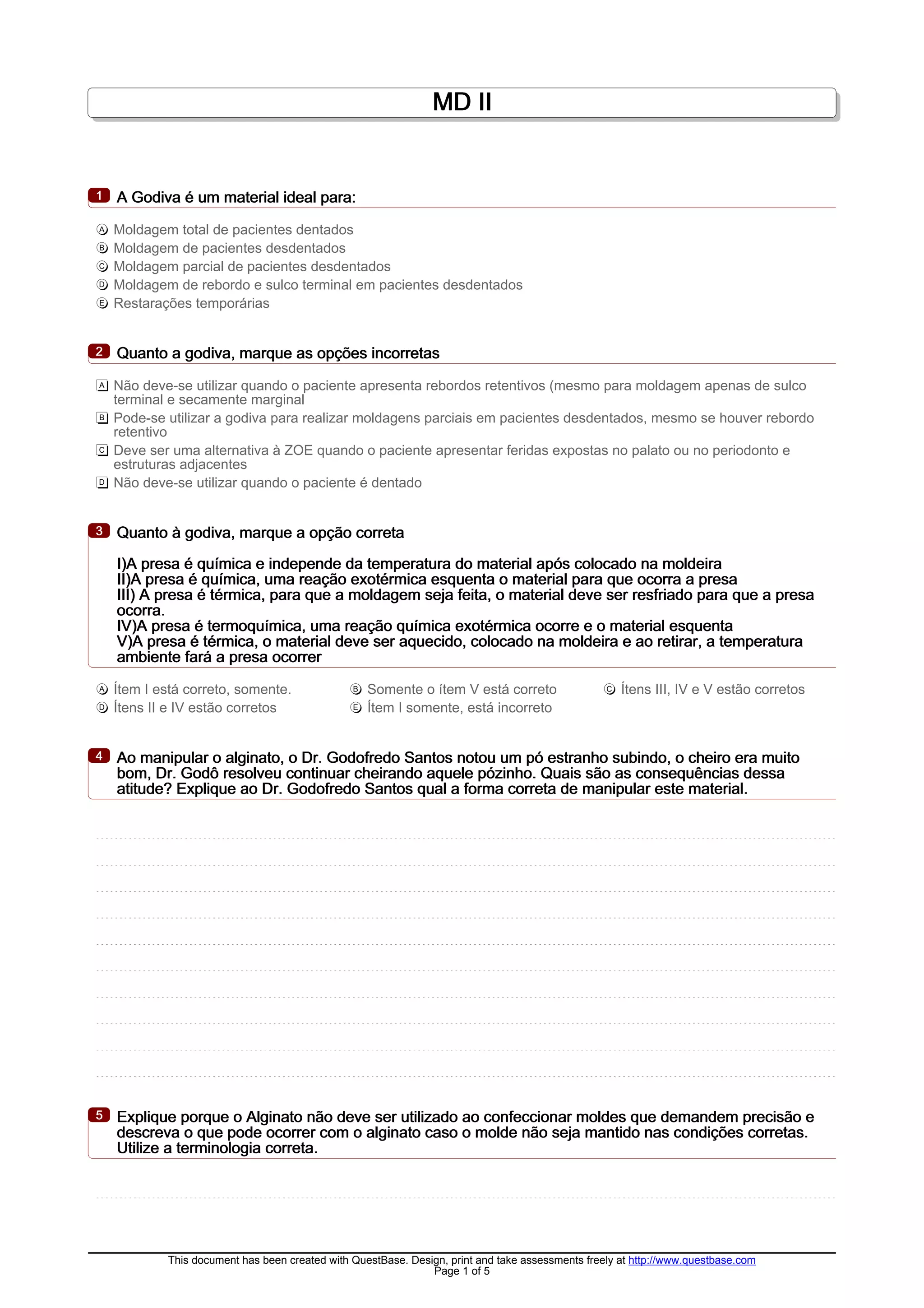 This document has been created with QuestBase. Design, print and take assessments freely at http://www.questbase.com