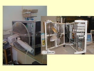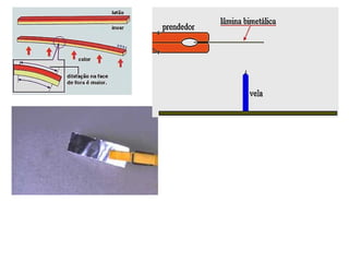 O documento discute os três mecanismos de transferência de calor: condução, convecção e radiação. A condução ocorre no contato direto entre moléculas, a convecção em fluidos como líquidos e gases, e a radiação propaga-se por ondas eletromagnéticas mesmo no vácuo. Além disso, aborda conceitos como coeficiente de condutibilidade térmica, dilatação térmica, mudança de fase, termodinâmica e máquinas térmicas.