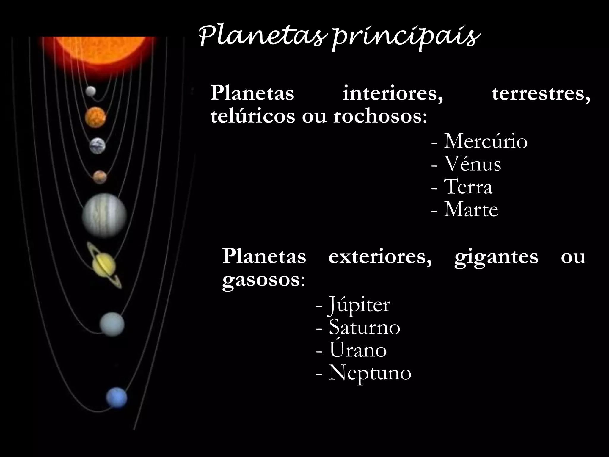 Este documento descreve os principais planetas do Sistema Solar, dividindo-os em planetas interiores (Mercúrio, Vênus, Terra e Marte) e planetas exteriores ou gigantes gasosos (Júpiter, Saturno, Urano e Neptuno), fornecendo detalhes sobre suas características físicas e satélites naturais.