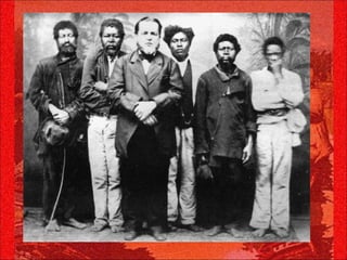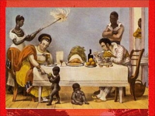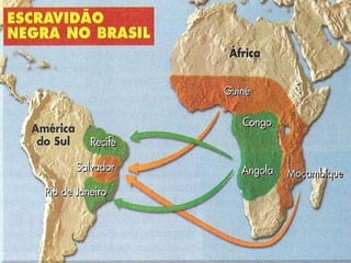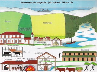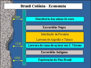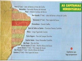 O documento discute a colonização portuguesa da América, incluindo a chegada dos portugueses ao Brasil e seus interesses econômicos, políticos e religiosos. Dividido em capítulos, aborda os povos indígenas, a exploração do pau-brasil, a atuação da Igreja Católica e das ordens missionárias, e o desenvolvimento da economia colonial baseada na agricultura e no trabalho escravo.
