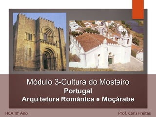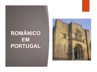 1. O românico implantou-se principalmente no norte de Portugal, entre Minho e Alentejo, acompanhando o processo de reconquista cristã. 2. A arquitetura românica portuguesa reflete o contexto de reconquista e povoamento, com igrejas ligadas a mosteiros e ordens religiosas. 3. Caracteriza-se por materiais como pedra e tijolo, planta basilical, decoração escultórica e elementos como arcos redondos.